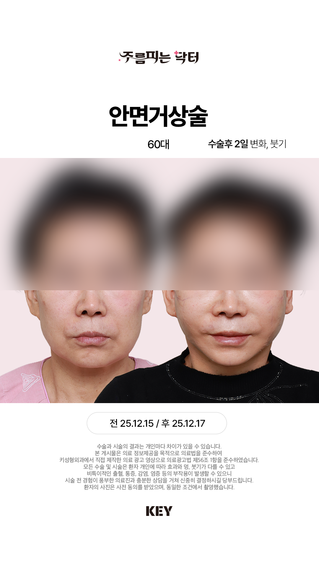 60대 여성분의 수술후 2일 전후사진입니다.